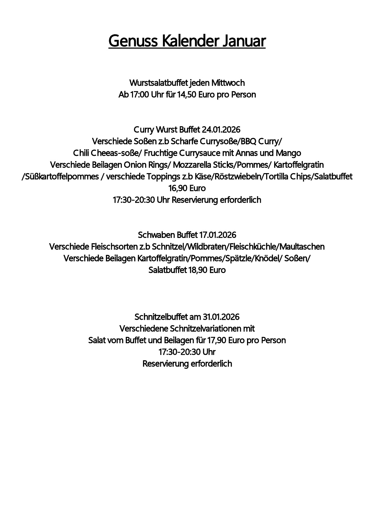 Frische die man schmeckt - nach diesem Motto wird bei uns noch richtig gekocht: Brote, Maultaschen und Spätzle werden selbst gemacht sowie Suppen und Soßen. Mit vielen frischen und wo möglich regionalen Produkten verfeinern wir unsere Gerichte. Wir bieten saisonale Spezialitäten –